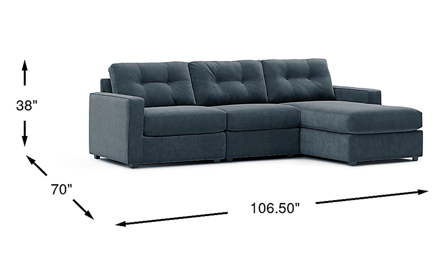 With a total width of 106.5 inches and a chaise depth of 70 inches, this sectional offers a generous seating area without a massive footprint. It is particularly well-suited for urban apartments or townhomes because of its modular nature; the pieces can be easily navigated through narrow doorways or staircases during delivery and then configured to best utilize your specific floor plan, such as placing the chaise against a corner to maximize open floor space.