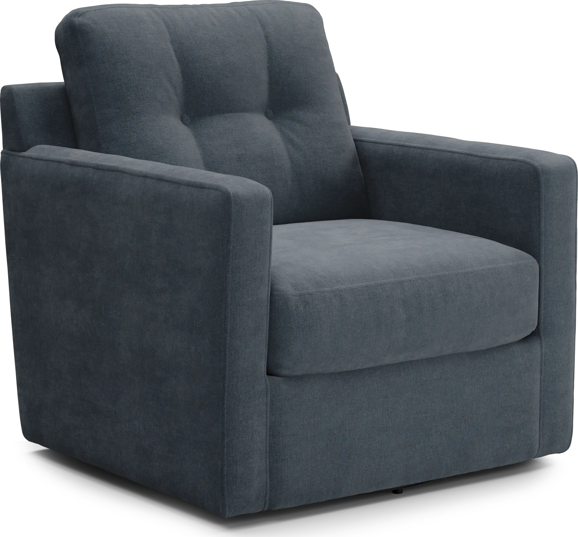 Discover the limitless possibilities of a Drew & Jonathan ModularOne swivel chair, thoughtfully designed with comfort and flexibility in mind. This customizable accent chair is upholstered on all sides in our signature fabric, New Horizon. This soft, indigo chenille includes Repreve yarn, made with recycled plastic bottles. The seating area features welted track arms, top-stitched seat cushions and button-tufted back cushions for the perfect piece to coordinate with the ModularOne. Visit a showroom to learn more about individual components and to work with a sales specialist to customize your own configuration today.