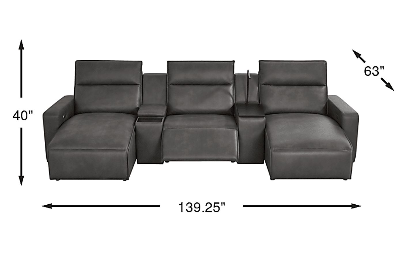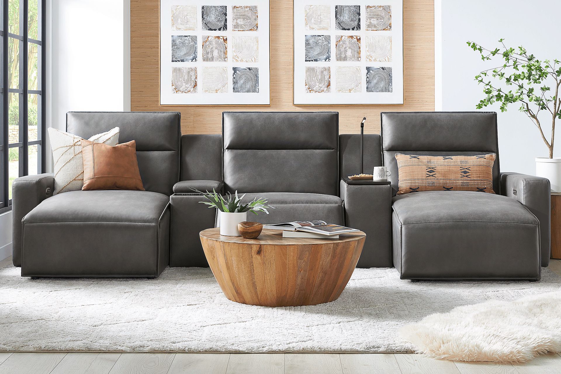 Modulartwo Charcoal 5 Pc Dual Power Reclining Sectional With Media And Wood Top Consoles