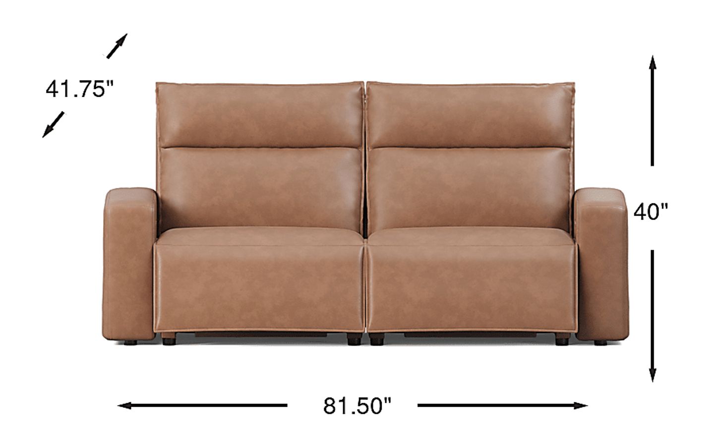 Discover the unlimited possibilities of the ModularTwo dual power reclining loveseat, thoughtfully designed with both comfort and flexibility in mind. Contemporary in style and upholstered in a plush suede-soft saddle colored microfiber, its tailored silhouette is enhanced by welted track arms and tufted back cushions for a look of refined elegance and serenity. Dual power reclining functionality allows for easy adjustment in the headrests and footrests, providing the ultimate in personalized comfort. Select a preconfigured design or visit a showroom to create the modular solution perfect for your space and style. Upholstery: 100% Polyester.