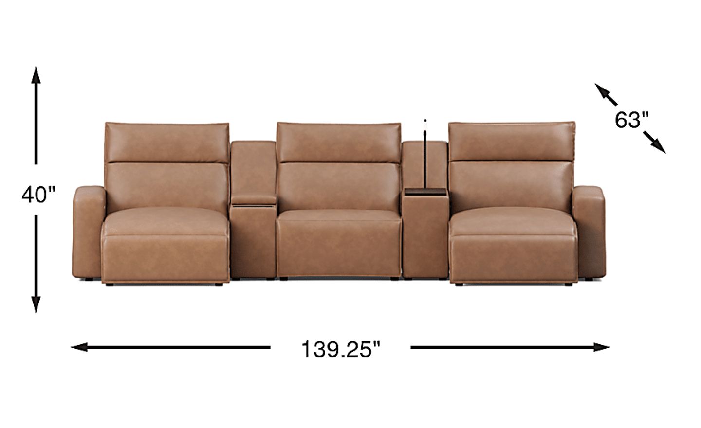 Discover the unlimited possibilities of the ModularTwo dual power reclining sectional, thoughtfully designed with both comfort and flexibility in mind. Contemporary in style and upholstered in a plush suede-soft saddle colored microfiber, the sectional's tailored silhouette is enhanced by welted track arms and tufted back cushions for a look of refined elegance and serenity. Each piece is upholstered on all sides, offering endless opportunities for both reconfiguration as well as individual use. Dual power reclining functionality allows for easy adjustment in the headrest and footrest, providing the ultimate in personalized comfort. One console includes a touch-activated reading light and swivel-top wood table with hidden storage. The other features Bluetooth speaker connectivity, retracting cupholders and wireless charging. Select a preconfigured design or visit a showroom to learn about individual components and create the modular sectional perfect for your space and style. Upholstery: 100% Polyester