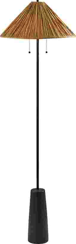 Introducing the Moffat Nest Black Floor Lamp, a striking blend of natural textures and modern sophistication. Featuring a sleek black ceramic base and black metal pole, this lamp offers a refined, contemporary look. The tapered raffia grass shade adds a touch of organic texture, creating a warm and inviting ambiance. Standing at an impressive 60 inches in height, it's perfect for illuminating living rooms, bedrooms, or office spaces. The on/off double pull chain switches provide both convenience and a stylish touch, making this floor lamp a perfect addition to your home decor. Partial assembly may be required.