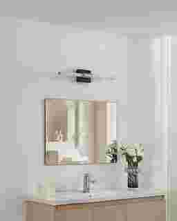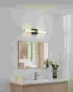 Sleek and streamlined, the Mohican Alley Silver Sconce adds modern sophistication to bathroom and vanity spaces. A matte black backplate is paired with brushed nickel accents for a bold, minimalist look, while the slim LED bar delivers bright, even illumination. The integrated LED offers adjustability, allowing you to choose the perfect color temperature for your space. Ideal for contemporary bathrooms, powder rooms, or over modern mirrors. Professional installation by an electrician is recommended.