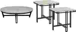 Showcasing a luxurious design, the Molino collection makes a bold statement to upgrade your living room. Boasting marble-inspired opulence, this contemporary table set features beige stone tabletops for stylish space to place books, drinks and appetizers. The cocktail table offers an oval shape that creates a clean, modern look, while the two end tables come in a square shape for a geometric contrast. Rendered in a dark gray finish, this ensemble's metal legs highlight an artistic appearance with intercrossed layers.