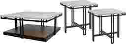 Contemporary design at its finest, the Molino table set endows luxurious style for your gathering area. Boasting marble-inspired opulence, the beige stone tabletops offer chic spots to place books, drinks and appetizers. Each table's square shape creates a clean, modern look. Rendered in a dark gray finish, the metal legs form a geometric, artistic appearance. Completing the set, the cocktail table features casters for easy repositioning.