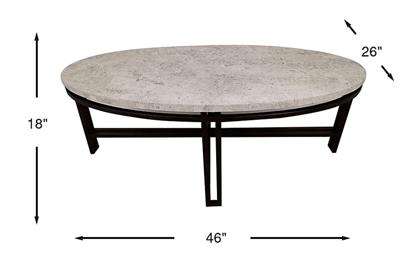 Showcasing a luxurious design, the Molino cocktail table makes a bold statement to upgrade your living room. Boasting marble-inspired opulence, the beige stone tabletop offers a stylish spot to place books, drinks and appetizers. Its oval shape creates a clean, modern look. Rendered in a dark gray finish, this table's metal legs form a geometric, artistic appearance. Some customer assembly.