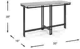 Yes, this table is an excellent solution for urban apartments or homes with limited square footage. Its slim 18-inch depth and long 50-inch profile allow it to provide a functional surface in high-traffic areas, such as an entryway or a narrow corridor, without making the space feel cramped. The open, geometric metal leg design further enhances the sense of space by maintaining clear sightlines near the floor.