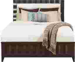 The scalloped curves of the Mondavi king bed bring to mind a calming water ripple effect, easing you into a comfortable and relaxing sleep experience. Adding just enough visual interest to make this contemporary bed appealing, it also maintains a stylish grace that looks great in any room. Constructed of poplar solids and basswood veneers, a rich espresso finish complements the upholstered headboard. Mattress and foundation (if required) sold separately. Bed shown is queen size. Bed board required for mattress support.