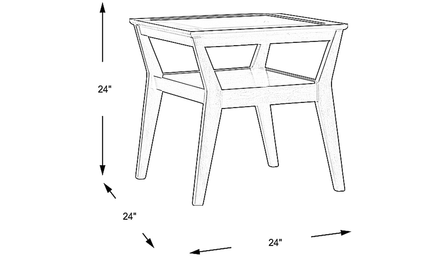 Angled lines evoke mid-century styling that sets the Mondello end table apart. Going beyond traditional styling, the table has architectural flair that creates a stunning silhouette. This piece is crafted with wood solids and birch veneers in a rich brown finish. A tempered glass insert graces the top, while a lower display shelf offers space for books and more.
