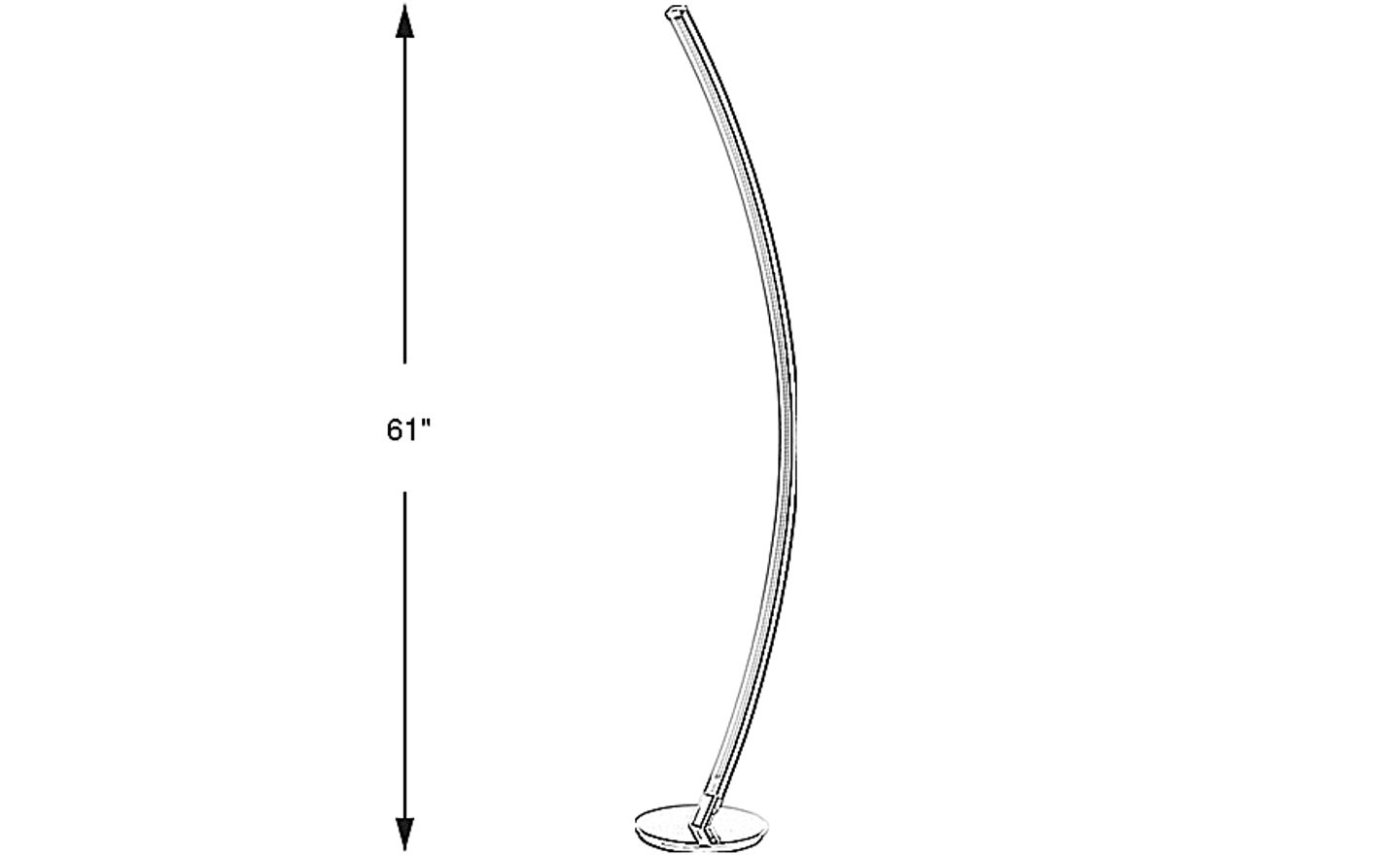 Standing 61 inches tall, this lamp sits within the ideal height range for a floor lamp, positioning the light source comfortably above seating. The arc design features a subtle curve that allows it to extend light over a sofa or reading chair from a corner or behind a sectional. This makes it a space-efficient solution that provides overhead-style lighting without the need for permanent ceiling installation.
