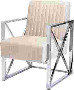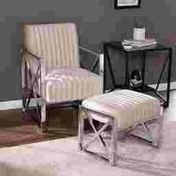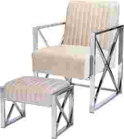Elegant seating comes home with this Moniteau accent chair and ottoman set. Velvet upholstery pairs beautifully with a shiny chrome frame and stitched details for a plush, comfortable, and sophisticated look. X-frame details on the armrests create a classic feel, while tufted cushions add unique texture and design. Elevate your living room or home office when you bring home this upholstered armchair and footstool set. Customer assembly is required.