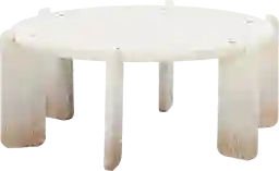 A round cocktail table is an excellent solution for small living rooms or narrow apartment layouts. Its lack of corners allows for better traffic flow, making it easier to navigate around the seating area without feeling cramped. With a 35.5-inch diameter, it provides ample surface area for essentials while maintaining a compact footprint that helps keep a small space feeling open and airy.