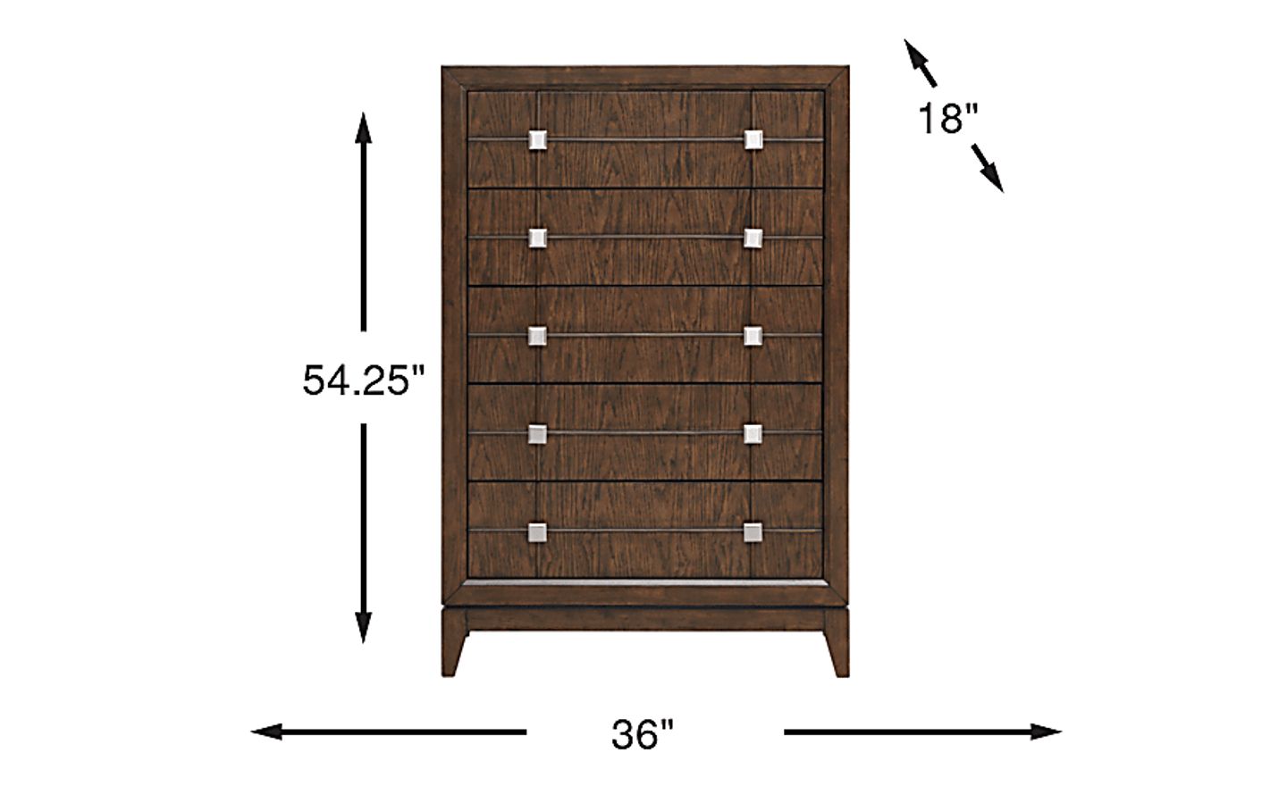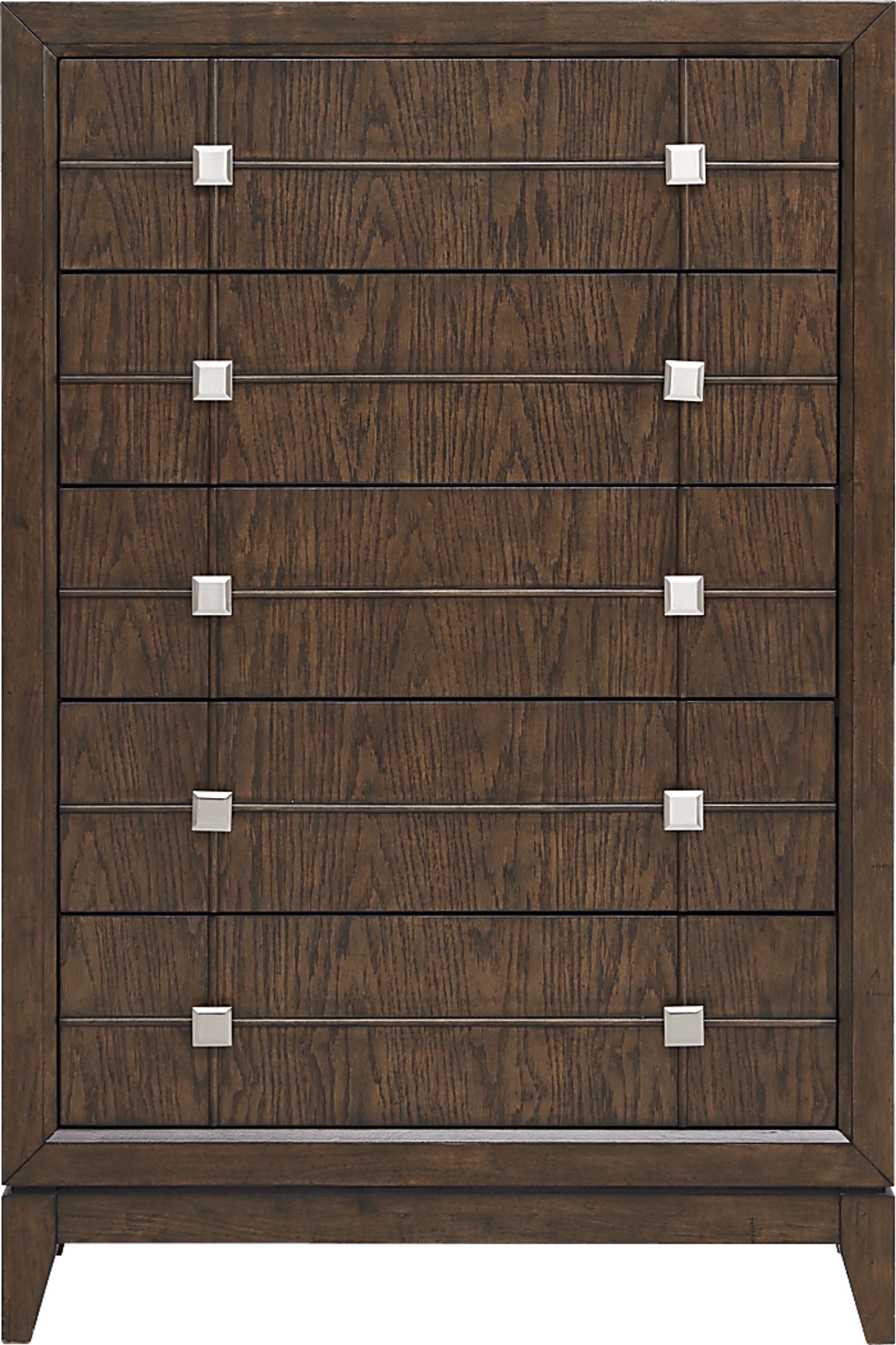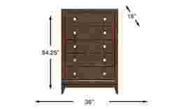 Expand your storage with the Monroe Heights chest. Five vertically arranged drawers offer plenty of storage for clothing and more without taking up too much space in your room. Poplar wood construction in a brown finish look beautiful with the contrast of the metal hardware pulls.