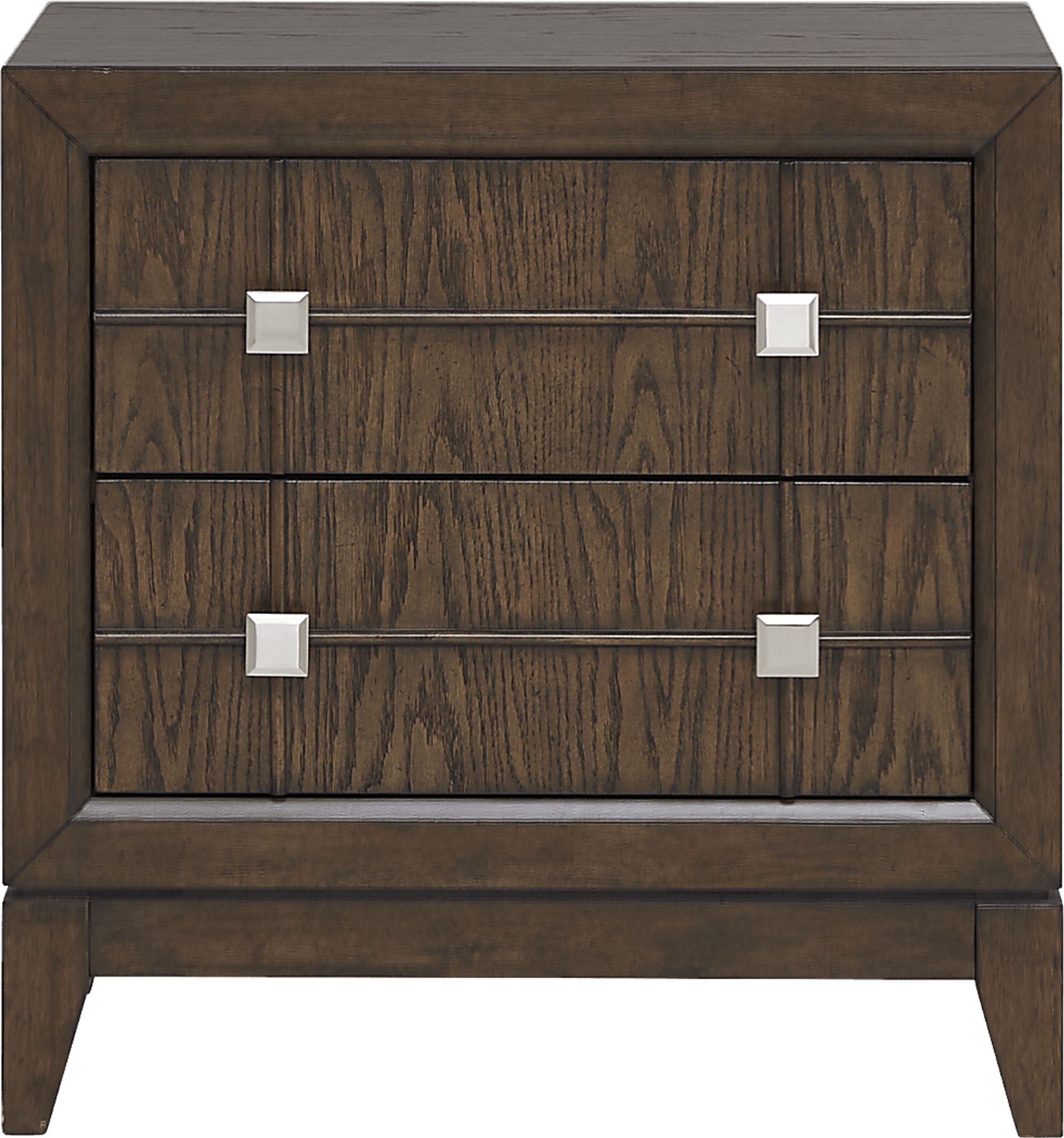 Keep your necessities close with the Monroe Heights nightstand. Poplar solid construction makes this nightstand more durable without sacrificing on style. A rich brown finish is accented by stylish metal hardware on the two drawers.
