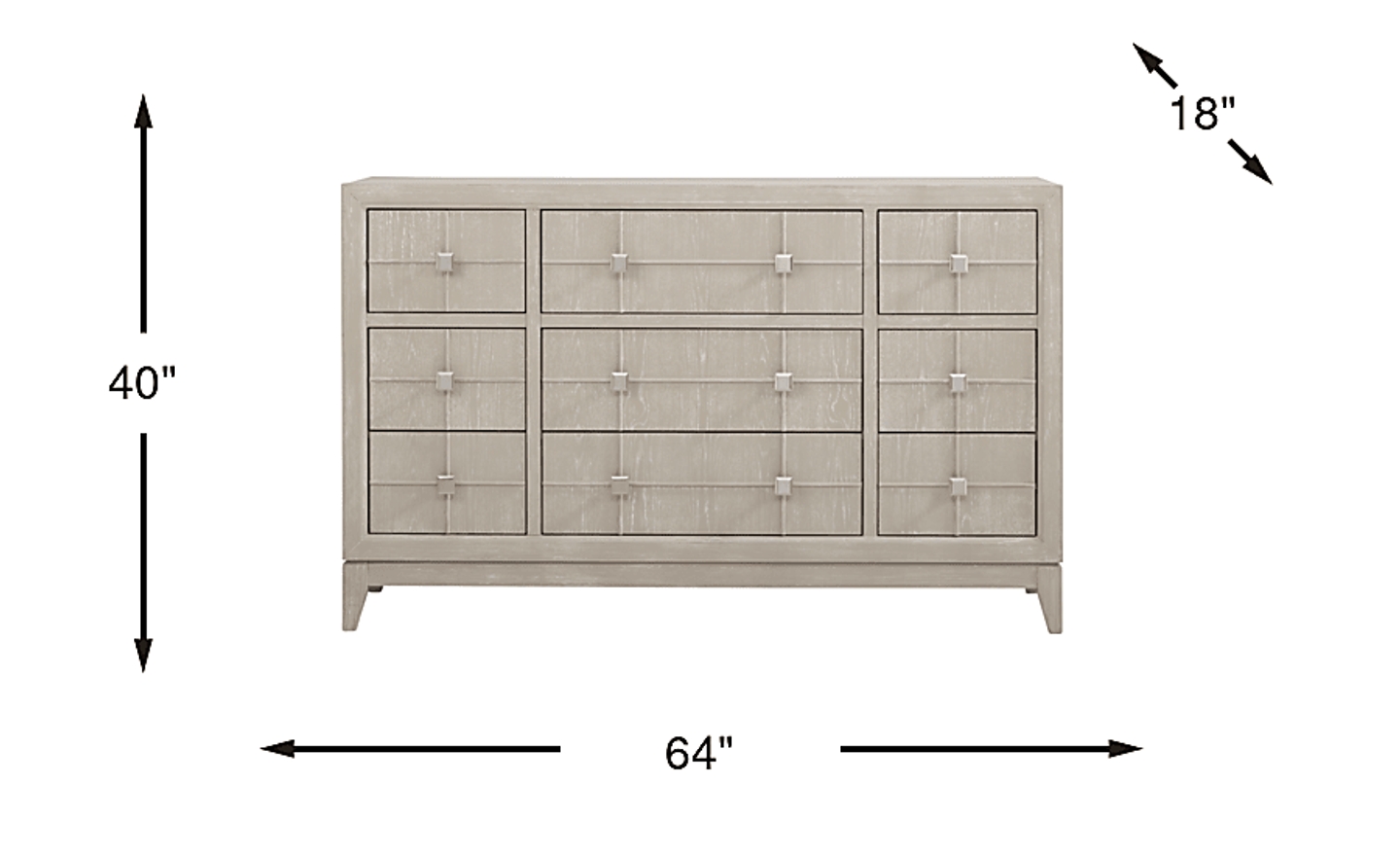 Add a transitional flair to your bedroom with the stylish Monroe Heights dresser. Featuring nine spacious drawers, perfect for all your clothes, bedding and more, this piece has square shaped metal hardware that adds a nice bit of contrast to the brown finish of this piece. Poplar solid construction helps this piece last.