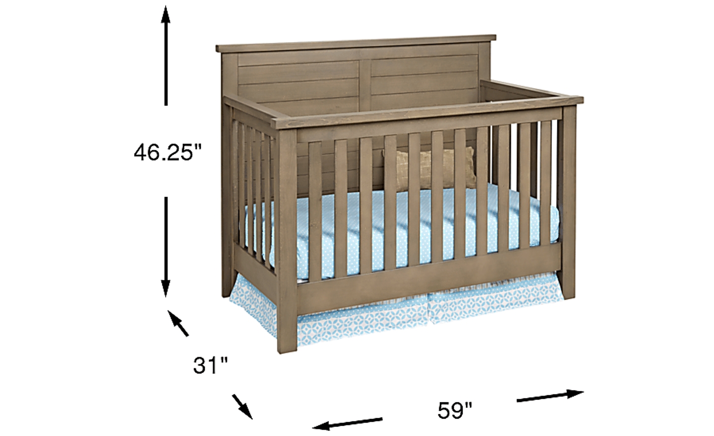 An exceptional piece of furniture, the Montana crib's rustic style and solid construction make it a durable choice for your nursery. Poplar solids and poplar veneers are complemented with a non-toxic driftwood finish. A four point positioning system allows you to easily adjust the mattress height as your little one grows. This crib is JPMA certified and it meets or exceeds all safety standards set by the CPSC and ASTM. Add the toddler rails or conversion rails (both sold separately) to extend this crib's usefulness into their toddler years and beyond! Easily converts to toddler bed with toddler rails as an additional purchase. Easily converts to full bed with conversion rails added as additional purchase. Customer assembly required. Crib mattress and linens not included.
