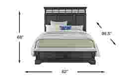 Classically styled with a bit of rustic flair, the Montana Ridge king bed will help you wind down in a space you'll love coming home to. Crafted of pine solids and elm veneers in a brown finish, this bed fosters a beautiful design that fits well with both traditional and modern styles. The panel headboard, which includes an open grid-like design at the top, showcases its natural wood grain construction. Simple yet refined, a bench built into the footboard is upholstered with soft polyester in a light beige color. Mattress and foundation (if required) sold separately. Bed shown is queen size.