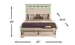 Classically styled with a bit of rustic flair, the Montana Ridge king bed will help you wind down in a space you'll love coming home to. Crafted of pine solids and elm veneers in a white finish, this bed fosters a beautiful design that fits well with both traditional and modern styles. The panel headboard, which includes an open grid-like design at the top, showcases its natural wood grain construction. Simple yet refined, a bench built into the footboard is upholstered with soft polyester in a light beige color. Mattress and foundation (if required) sold separately.