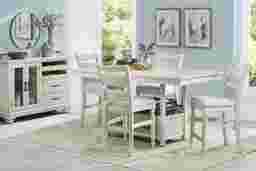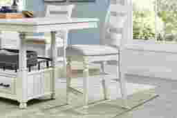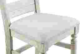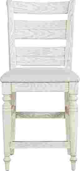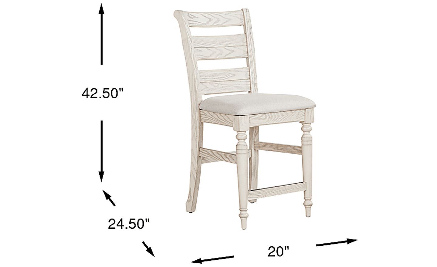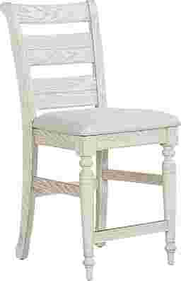A wonderful dining room addition, the Montana Ridge counter height stool offers elegant seating for your dining area, with a bit of rustic charm. Crafted with elm veneers in a soft white finish, this traditional piece features a ladder back design with beautiful carving detail on the front legs. An upholstered seat gives this chair a boost of comfort, making it well-suited for family meals.