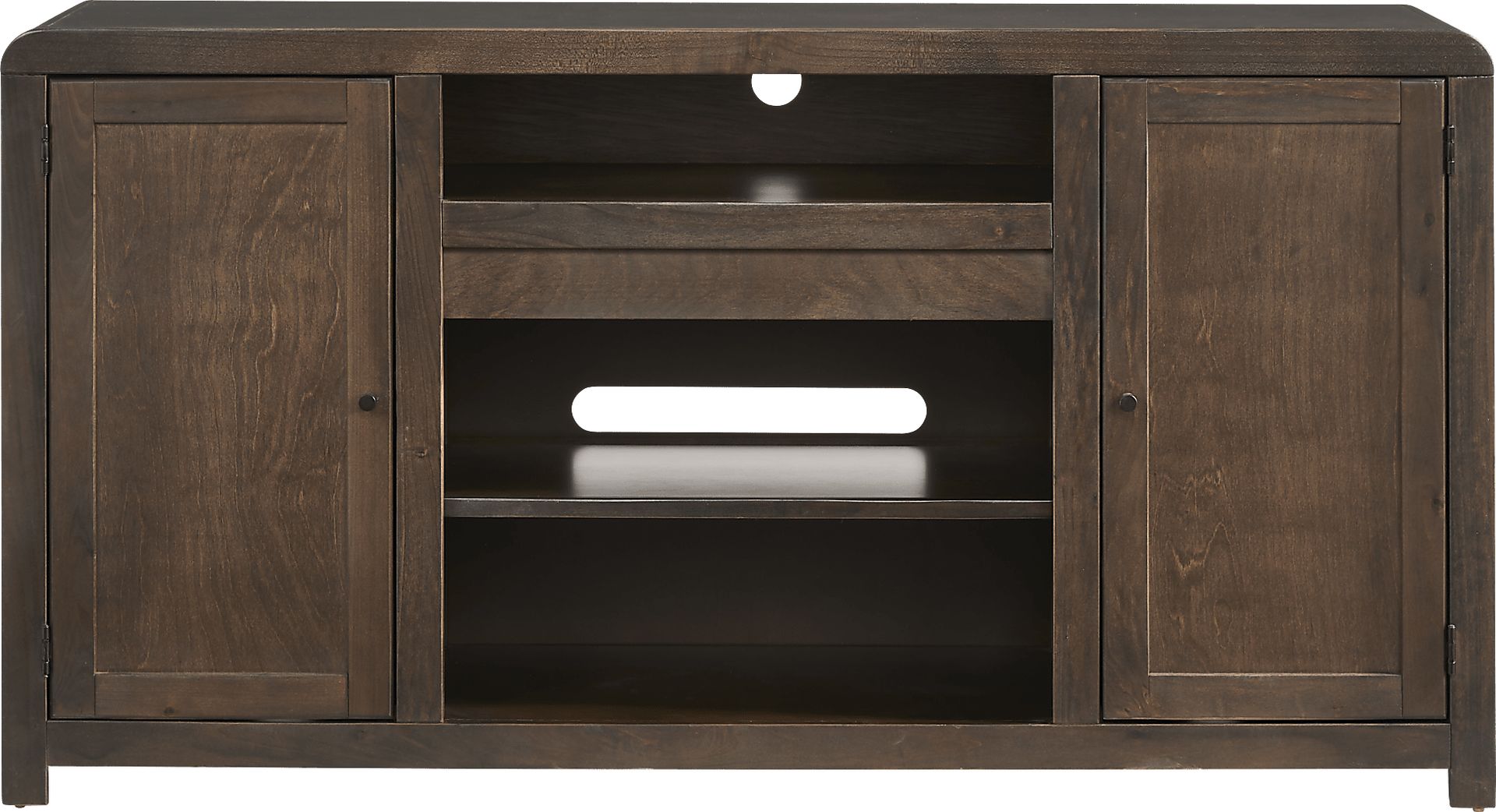Symmetrical and timeless with a charming perspective of cozy warmth and poise, the Montavilla console is designed to enhance both style and comfort in your home. Crafted from poplar wood, this contemporary piece boasts a rich espresso finish that effortlessly complements any style. Showcasing two doors that provide easy access to storage and a top center cubby that offers the perfect space for media devices or display items, this console is built to accommodate televisions up to 65 inches. Adjustable shelves ensure customizable organization, while wire management holes keep cords neatly concealed.
