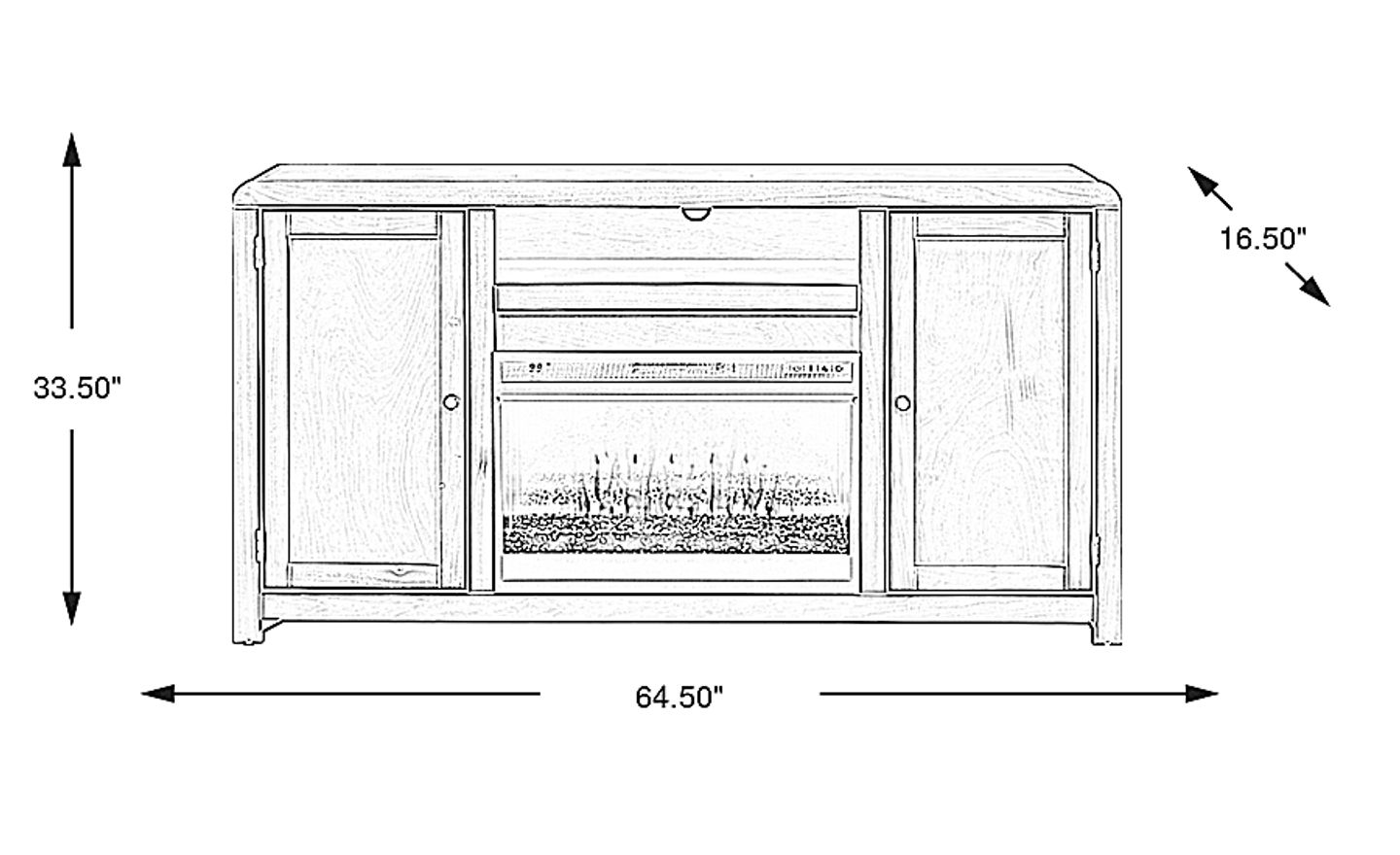 At approximately 64 inches wide and 16 inches deep, this console offers a space-efficient profile that is well-suited for smaller living rooms or apartments. Its multi-functional design combines a media center, storage cabinet, and fireplace into a single footprint, while the two adjustable shelves and center cubby help maximize organization in limited spaces.