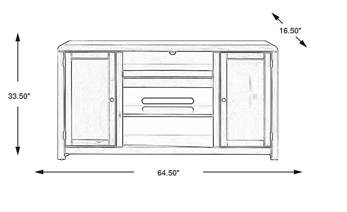 This 64-inch console is designed to accommodate televisions up to 65 inches. With a surface width of 64.5 inches, it provides a stable and aesthetically balanced base for most standard 65-inch displays, ensuring your screen is well-supported and proportionally framed.