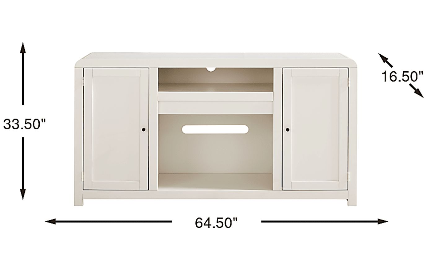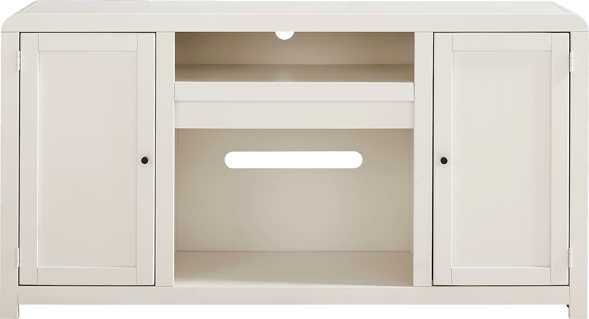 Symmetrical and timeless with a charming perspective of cozy warmth and poise, the Montavilla console is designed to enhance both style and comfort in your home. Crafted from poplar wood, this contemporary piece boasts a white finish that effortlessly complements any decor. Showcasing two doors that provide easy access to storage and a top center cubby that offers the perfect space for media devices or decor, this console is built to accommodate televisions up to 65 inches. Adjustable shelves ensure customizable organization, while wire management holes keep cords neatly concealed.