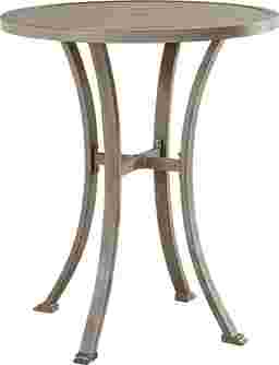 The Montecello outdoor bar height dining table from Cindy Crawford Home beautifully combines casual beachside living and contemporary style. Its 36-inch round rust-resistant aluminum tabletop in a gray finish is accentuated with a slatted design and elegant curved legs to create the perfect centerpiece for drinks and meals al fresco.