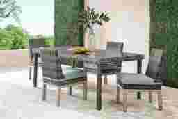 Montecello Gray 5 Pc Outdoor Dining Set With Azure Cushions