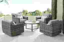 Montecello Gray 5 Pc Outdoor Swivel Chat Set With Azure Cushions