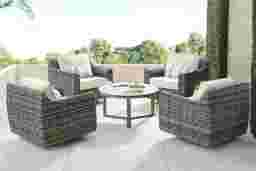 Montecello Gray 5 Pc Outdoor Swivel Chat Set With Twine Cushions