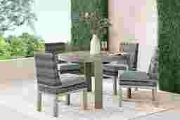 Montecello Gray 5 Pc Round Outdoor Dining Set with Azure Cushions