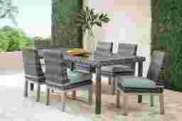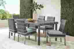 Montecello Gray 7 Pc Outdoor Dining Set With Azure Cushions