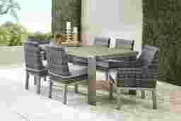 Montecello Gray 7 Pc Outdoor Dining Set With Azure Cushions