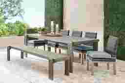 Montecello Gray 7 Pc Outdoor Dining Set With Azure Cushions