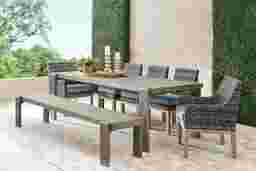 Montecello Gray 7 Pc Outdoor Dining Set With Azure Cushions