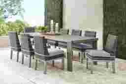 Montecello Gray 9 Pc Outdoor Dining Set With Azure Cushions