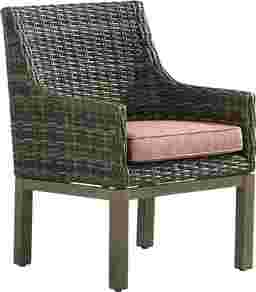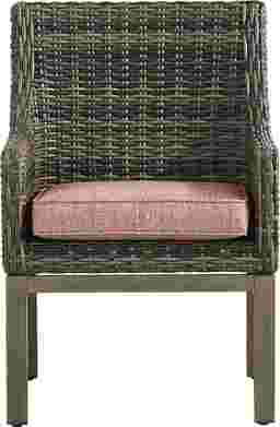 Boasting coastal contemporary style, the Montecello arm chair from Cindy Crawford Home offers a stylish solution for outdoor seating. All-weather handwoven wicker over a fully-welded rustproof aluminum frame is rendered in driftwood-inspired shades of gray, tan and brown. The Sunbrella fabric covered cushion, in a terracotta red, is mold, mildew and fade resistant. 100% Sunbrella fabric. To clean Sunbrella fabric cushions remove dirt and spray on cleaning solution (water and mild soap), then use a soft bristle brush or sponge. Allow cleaning solution to soak into fabric and rinse thoroughly until soap residue is removed. Air dry. Do not dry clean.