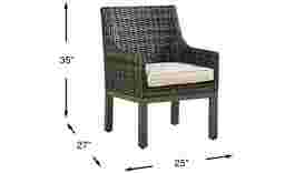 The Montecello outdoor dining collection from Cindy Crawford Home beautifully combines casual beachside living and contemporary style. Showcasing woven wicker in a gray finish, this arm chair boasts a soft twine-colored cushion in a durable outdoor fabric for lasting enjoyment, mold and mildew resistance, and UV-resistant color. Select cushion colors available in Sunbrella fabric.