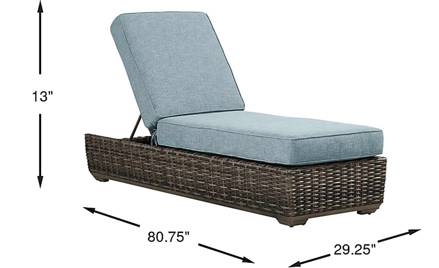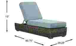 The Montecello chaise beautifully combines casual beachside living and contemporary style. All-weather woven wicker over a fully-welded rustproof aluminum frame boasts driftwood-inspired shades of gray, tan and brown. Outdoor cushions covered in azure blue performance fabric are colorfast, mold and mildew resistant for durable outdoor use.