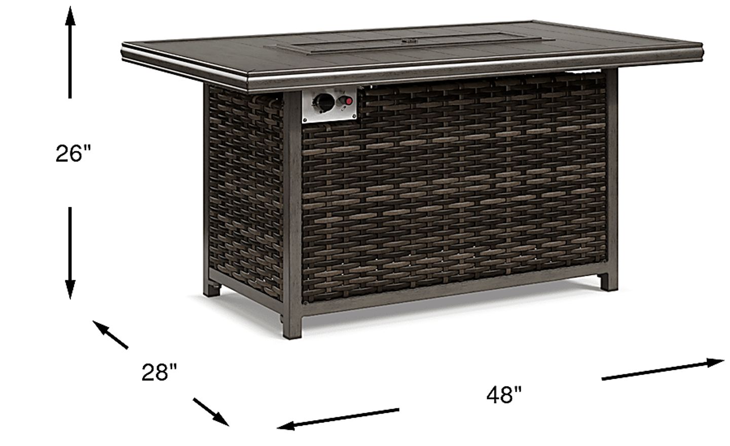 This fire pit is powered by a standard propane tank (not included) and features a user-friendly push-button igniter for quick, reliable starts. The internal compartment is designed to house a standard tank, maintaining the clean lines of the wicker exterior while providing a convenient and clean-burning fuel source.