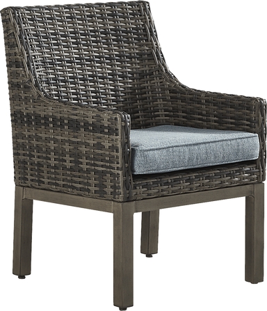 The Montecello outdoor dining collection from Cindy Crawford Home beautifully combines casual beachside living and contemporary style. Showcasing woven wicker in a gray finish, this side chair boasts a soft azure cushion in a durable outdoor fabric for lasting enjoyment, mold and mildew resistance, and UV-resistant color. Select cushion colors available in Sunbrella fabric.