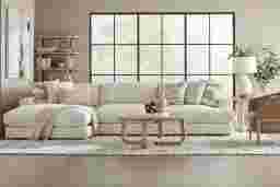 A cozy invitation to unwind and enjoy a warm, comfortable embrace with a dose of casual cool are just the beginning when it comes to the Drew & Jonathan Montecito modular sectional. A versatile centerpiece with family-friendly style, this laid-back contemporary set offers seat cushions with a plush custom blend of feathers, fiber and down surrounding a supportive foam core for comfort that’s soft yet structured, all upholstered in striking white chenille. Oversized wedge arms and extra-wide seats complete the look with plenty of room to spare. Plus, this sectional has the flexibility to be reconfigured, again and again, to fit your changing needs and taste. Upholstery: 100% Polyester