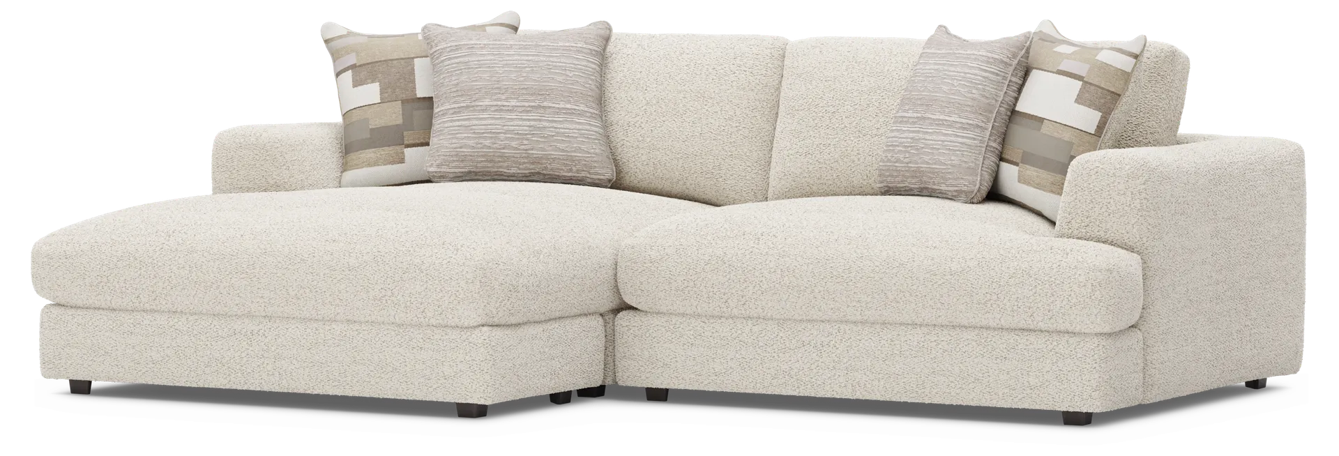 A cozy invitation to unwind and enjoy a warm, comfortable embrace with a dose of casual cool are just the beginning when it comes to the Drew & Jonathan Montecito modular sectional. A versatile centerpiece with family-friendly style, this laid-back contemporary set offers seat cushions with a plush custom blend of feathers, fiber and down surrounding a supportive foam core for comfort that’s soft yet structured, all upholstered in striking white chenille. Oversized wedge arms and extra-wide seats complete the look with plenty of room to spare. Plus, this sectional has the flexibility to be reconfigured, again and again, to fit your changing needs and taste. Upholstery: 100% Polyester.