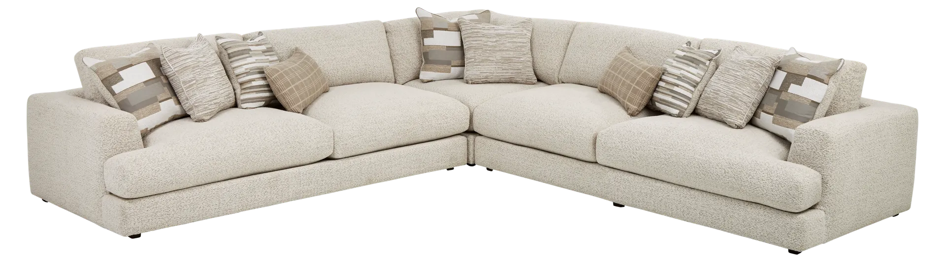 This sectional is engineered for a "soft yet structured" feel. The seat cushions feature a premium custom blend of feathers, fiber, and down, which provides a plush, cloud-like embrace. This luxurious top layer surrounds a high-resiliency foam core that ensures the cushions maintain their shape and provide lasting support over time.