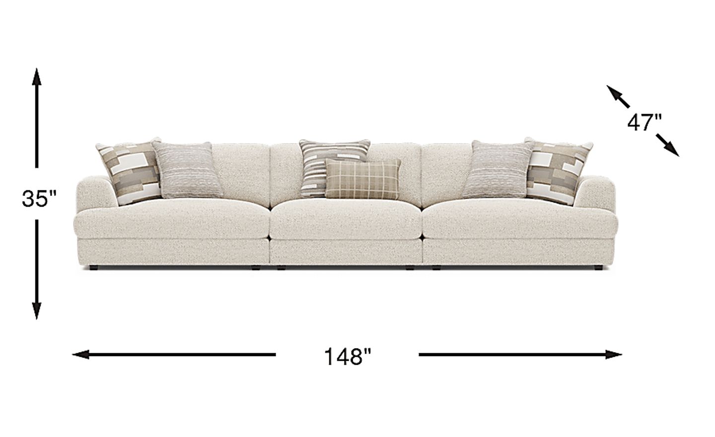 Measuring is the most critical step before investing in a large-scale piece like this. With a 148-inch width, this sofa is significantly larger than standard models and is designed to be the focal point of a room. We recommend the "2/3 rule," where your sofa should occupy approximately two-thirds of the wall it sits against. Because of its 47-inch depth, ensure you have at least 18 to 24 inches of walkway space around the piece to maintain a comfortable flow. Additionally, always measure your entryways, hallways, and any tight corners to guarantee the delivery team can navigate the frame into your home.