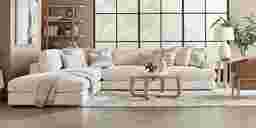 A cozy invitation to unwind and enjoy a warm, comfortable embrace with a dose of casual cool are just the beginning when it comes to the Drew & Jonathan Montecito modular sectional. A versatile centerpiece with family-friendly style, this laid-back contemporary set offers seat cushions with a plush custom blend of feathers, fiber and down surrounding a supportive foam core for comfort that’s soft yet structured, all upholstered in striking white chenille. Oversized wedge arms and extra-wide seats complete the look with plenty of room to spare. Plus, this sectional has the flexibility to be reconfigured, again and again, to fit your changing needs and taste. Upholstery: 100% Polyester