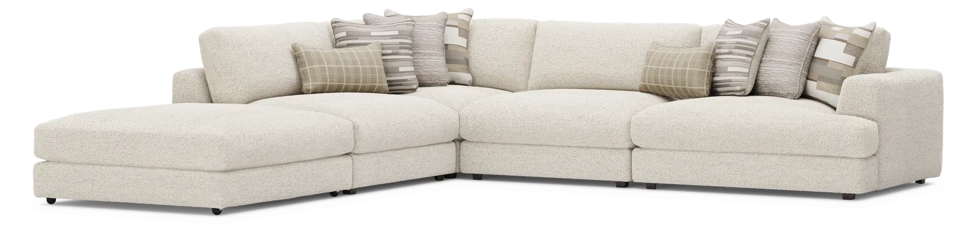 This sectional is engineered for a "soft yet structured" feel. The seat cushions feature a premium custom blend of feathers, fiber, and down wrapped around a high-resilience foam core. This layered construction provides the immediate, plush sink-in comfort of down while the foam core ensures the cushions maintain their shape and support over time.