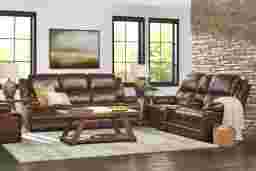 Understated style and charismatic appeal give the Montefano living room a relaxed, elevated charm. Transitional in style and upholstered in top grain leather where the body touches, this set features comfortable padded arms and attached seat and back cushions for a sumptuous feel. A chaise pad footrest provides a wider space to stretch and relax while the high-quality power reclining mechanism adjusts to your personal preference for the ultimate lounging experience. A center console provides convenience in both the sofa and loveseat, containing cupholders and storage for easy accessibility, making this collection perfect for entertaining guests or unwinding at the end of the day. Upholstery: Top grain leather where the body touches. Vinyl sides and back. Leather is a durable, low maintenance product, however, general regular maintenance is necessary. To keep your leather clean, vacuum it regularly, removing any dust, and clean it with water and a mild non-detergent soap.