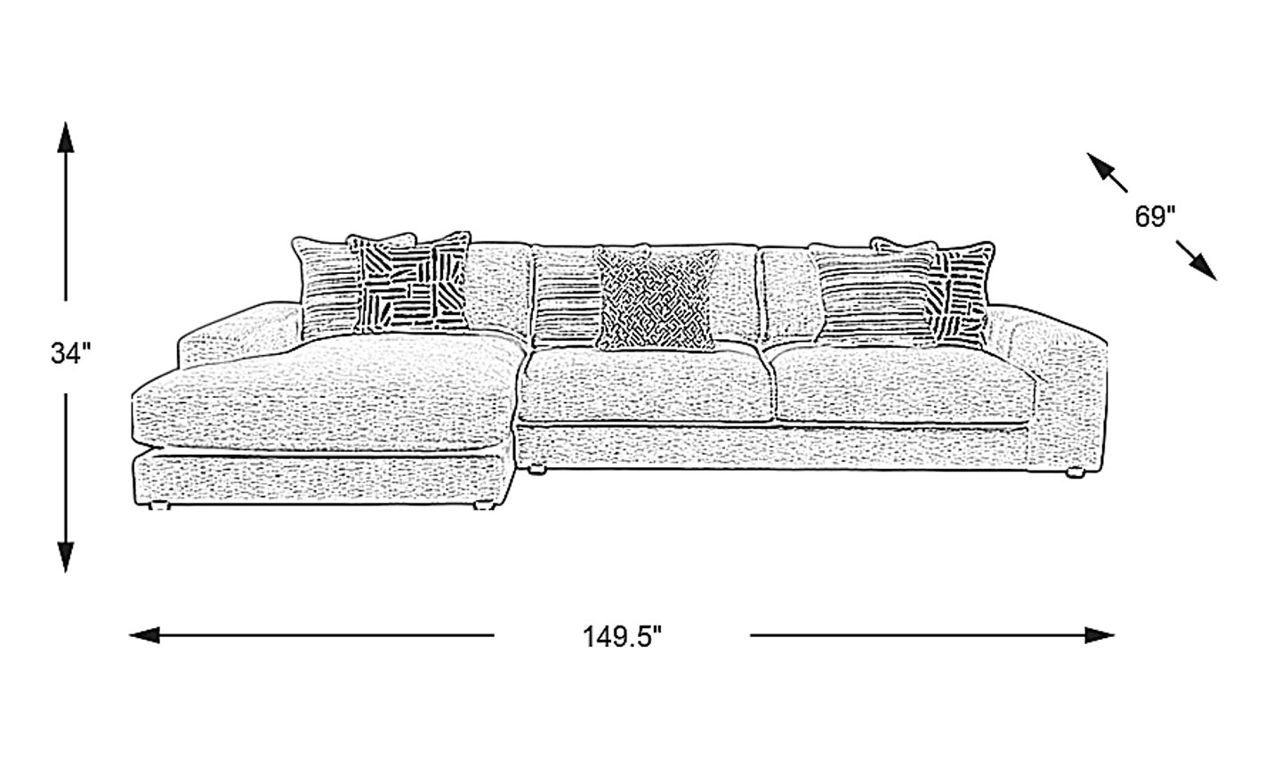 149.5"w"w x 69"d"d x 34"h"h